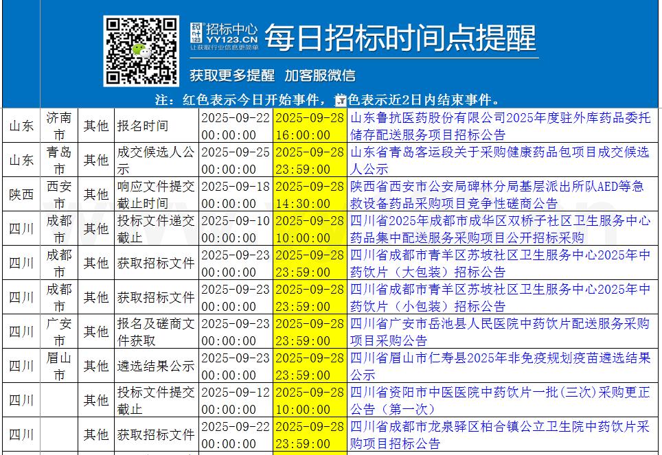 更多时间招标节点提醒,下载附件了解!