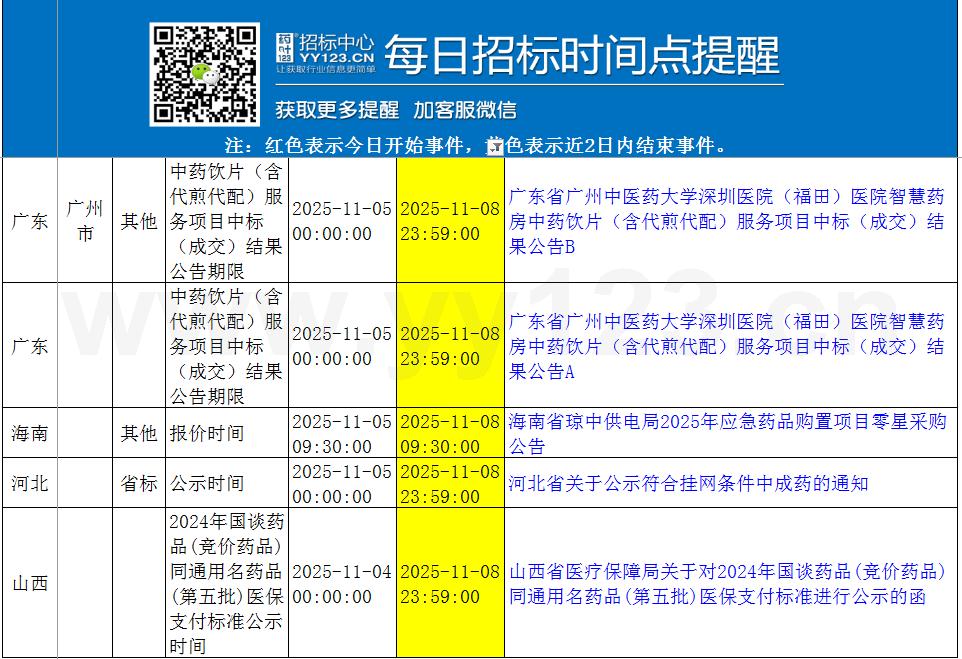 今日政策汇总与招标时间点提醒11月8日-11月10日